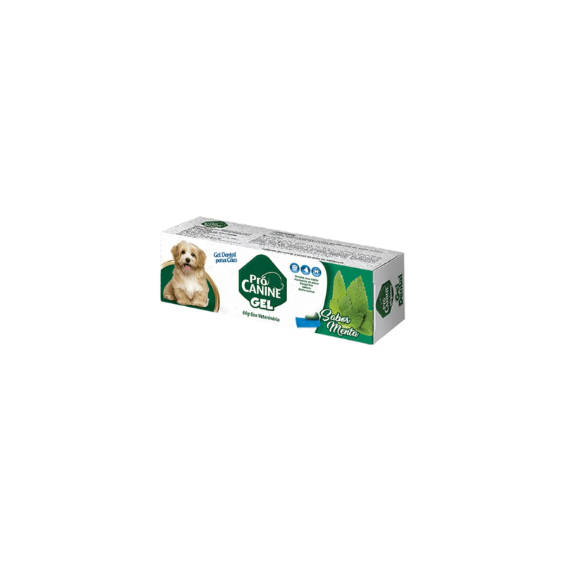 O gel dental Pró Canine, sabor Neutro, foi desenvolvido para a higienização bucal de cães. O Gel Dental ajuda a evitar o mau hálito, previne a formação de placas bacterianas, tártaros e gengivites, além de ajudar no clareamento. Sua composição não contém flúor ou sabões que sejam nocivos aos pets, podendo assim ser ingerido.