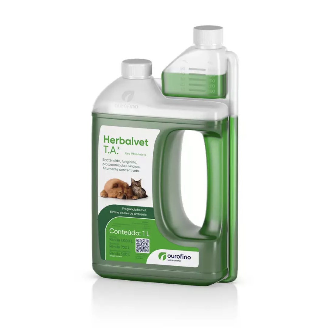 Herbalvet T.A.® é indicado como desinfetante (bactericida, fungicida, protozoaricida e viricida) e desodorizante com pro
