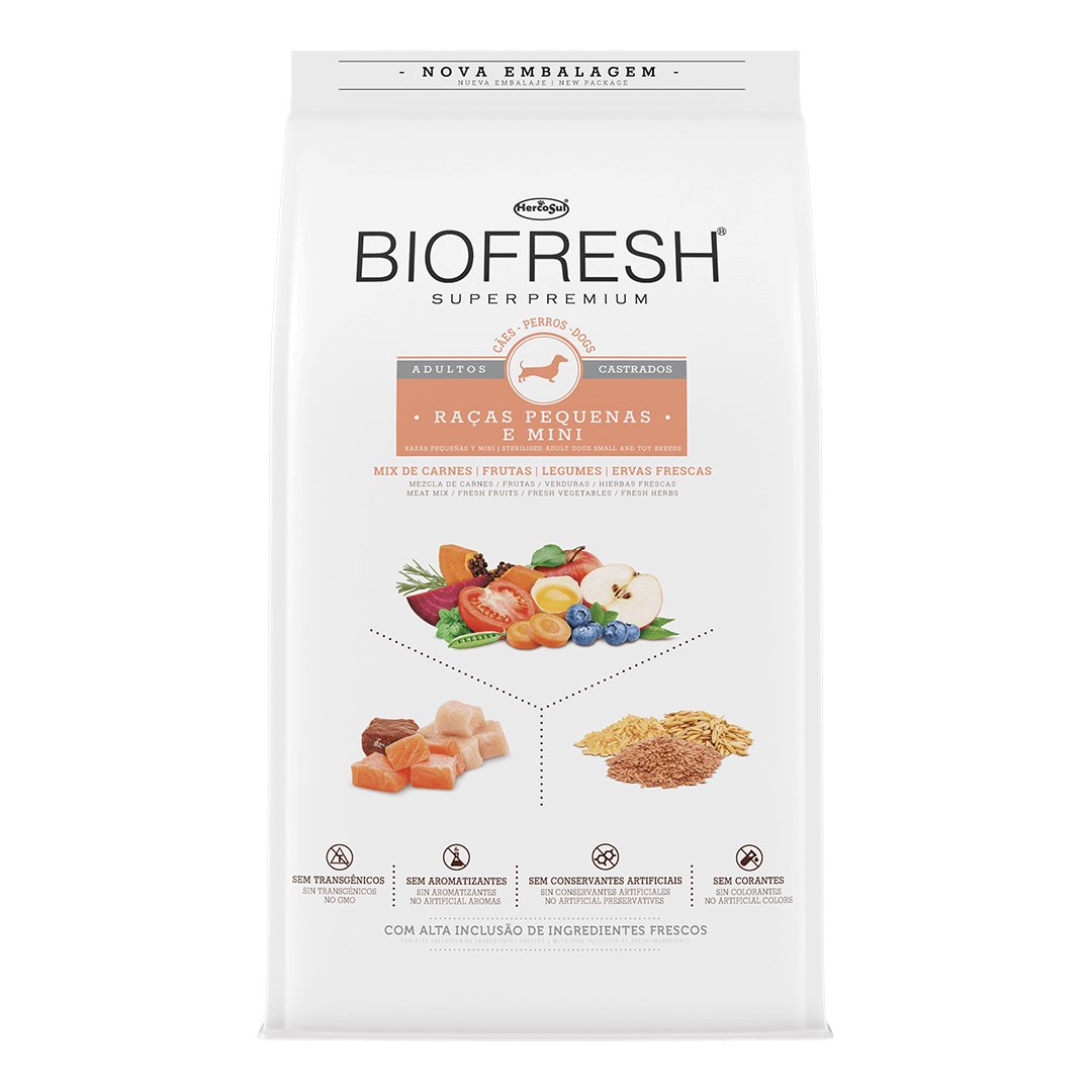 RAÇÃO BIOFRESH PARA CÃES ADULTOS CASTRADOS RAÇAS PEQUENAS E MINI