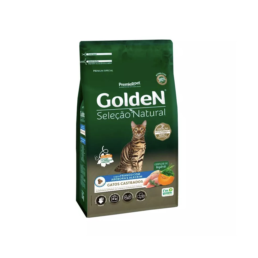 RAÇÃO GOLDEN SELEÇÃO NATURAL GATOS CASTRADOS ABÓBORA