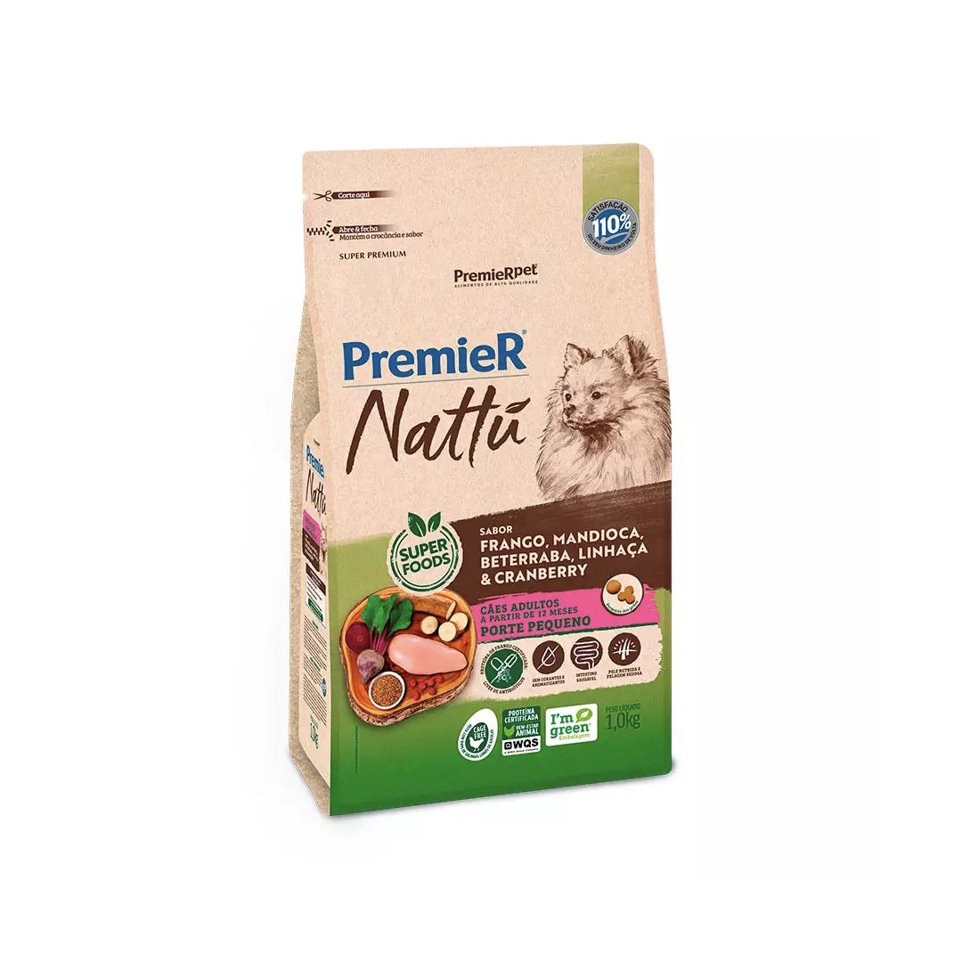 RAÇÃO PREMIER NATTU CÃES ADULTOS PORTE PEQUENO SABOR MANDIOCA