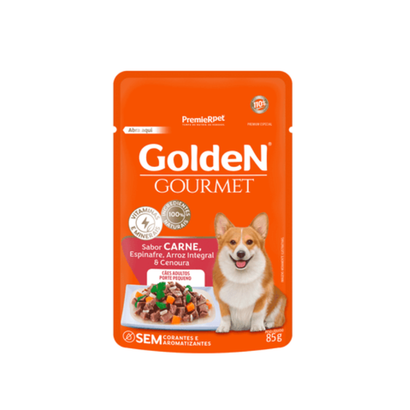 RAÇÃO ÚMIDA SACHÊ GOLDEN GOURMET CÃES ADULTO PEQUENO PORTE CARNE 85g