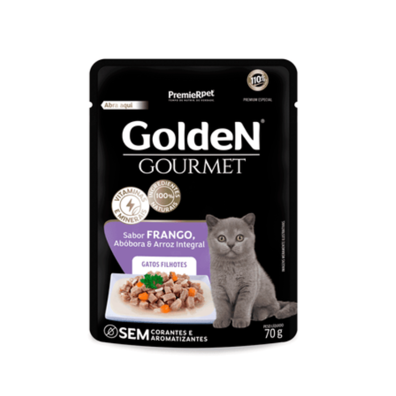 RAÇÃO ÚMIDA SACHÊ GOLDEN GOURMET GATOS FILHOTES FRANGO 70g